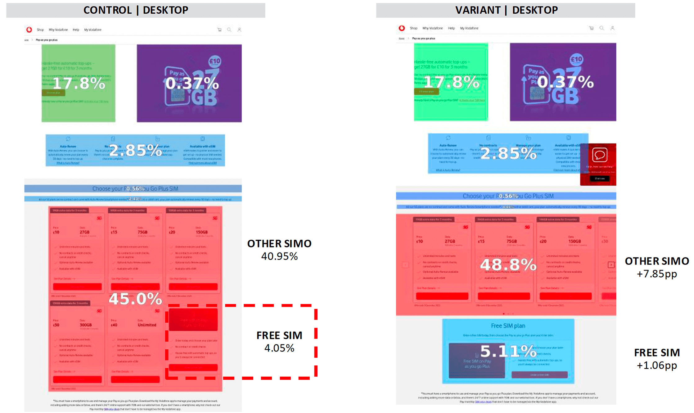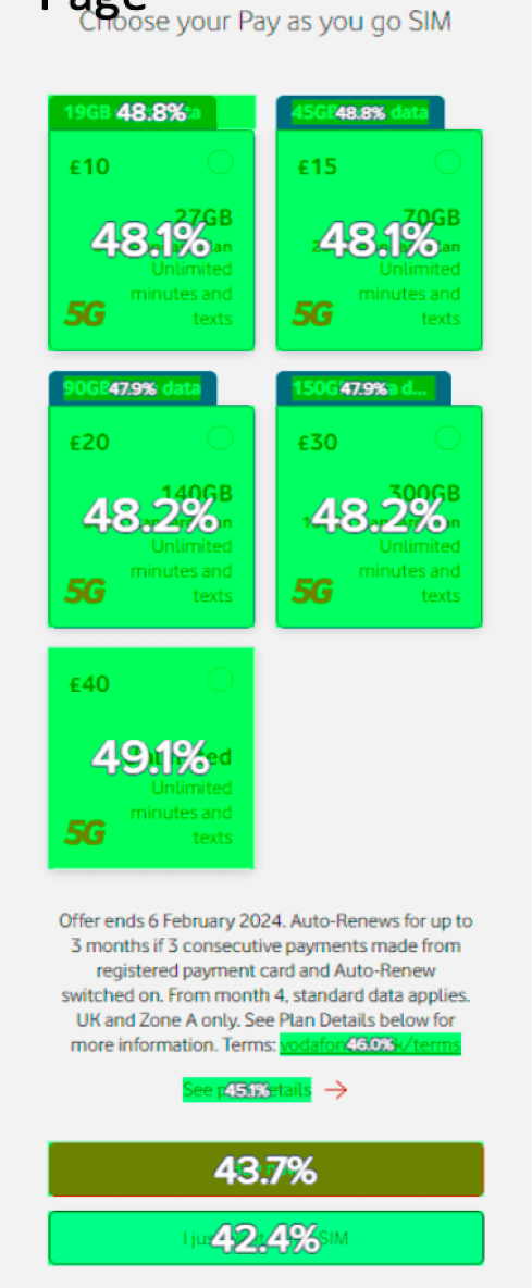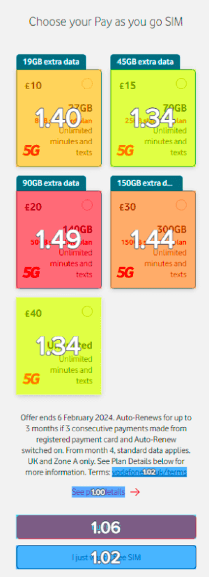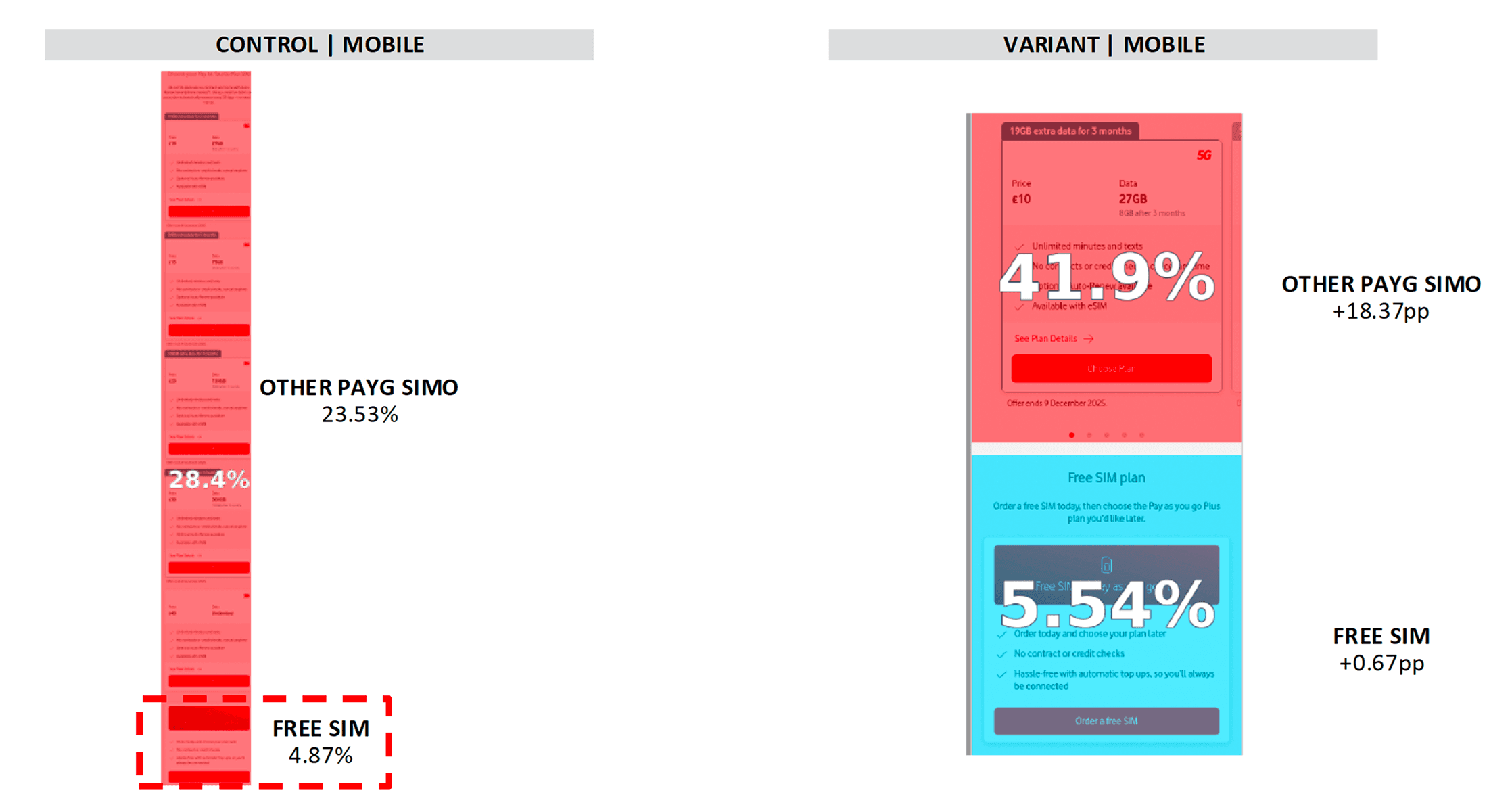 The main objective of this test was to optimise the PAYG plan cards to improve clarity, engagement, and funnel progression.